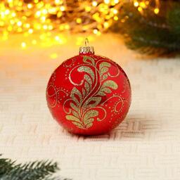Шар "Новогоднее перо на красном глянце" 10 см 5289211