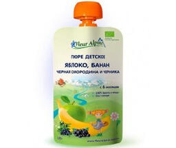 Пюре детское Fleur Alpine ЯБЛОКО и ЧЕРНИКА с 5 месяцев 90 г