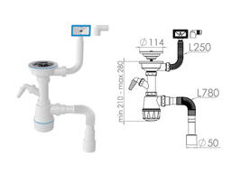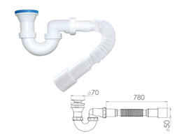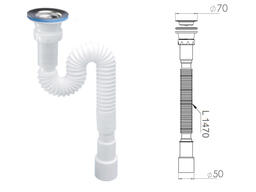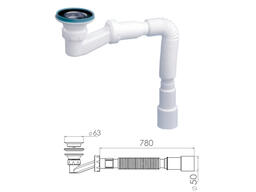 Сифон для кухни с прикручивающимся выпуском 70мм, с гибкой трубой 1 1/2" - 40/50мм, NOVA 1060