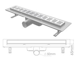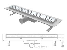 Сливной трап горизонтальный D 50, решетка нерж., 65х500мм полоски, NOVA 5103.001