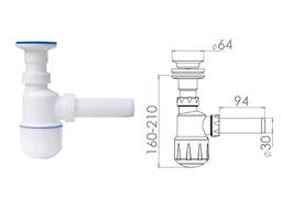 Сифон для умывальника, выпуск 64мм, с отводом 32мм, NOVA 1012