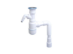 Сифон для кухни с выпуском 70мм, с отводом для стиральной машины, с гибкой трубой 1 1/2" - 40/50м (NOVA) 1061