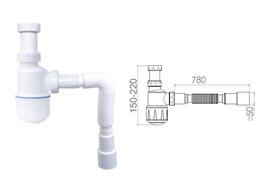 Сифон для биде, выпуск 64мм, с гибкой трубой 1 1/4"- 40/50мм, NOVA 1055