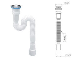 Сифон для умывальника с литым выпуском 64мм, с гибкой трубой 1 1/4", NOVA (Выход гибкой трубки на 40/50мм) 1050