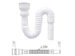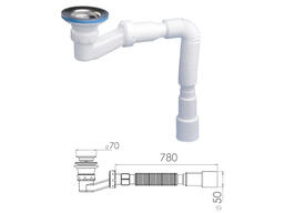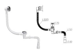 Сифон для ванны U-образный с выпуском и переливом 70 мм, с гибкой трубой 40х40/50, NOVA 1520