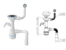 Сифон для кухни автомат, с гибкой трубой 3 1/2" - 40/50 мм, NOVA 1044