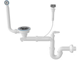 Сифон для кухни с круглым переливом, двойной, выпуски 3 1/2, с гибкой трубой 1 1/2 - 40/50мм, NOVA 1196