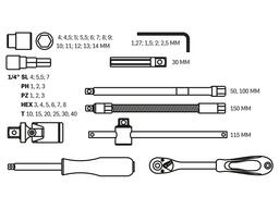 Набор головок и ключей 49 предм. 1/4" 12гр. TOPTUL GCAI4902