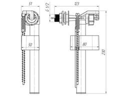 Набор с боковой подводкой 1/2", с пластиковым штуцером, металлизированная ручка шток эконом Ани Пласт WC4050M