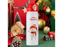 Термос, 500 мл, нержавеющая сталь, MERRY CHRISTMAS, белый, Снеговик, PERFECTO LINEA 27-225468