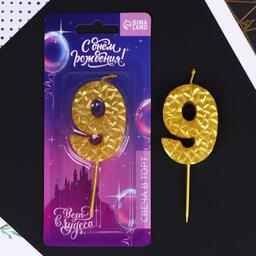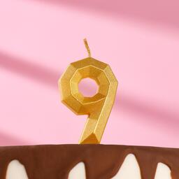 Свеча в торт «9», золотая