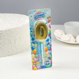 Свеча в торт цифра "0" золото