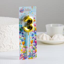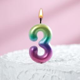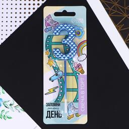 Свеча в торт «3», синяя