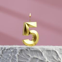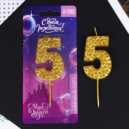 Свеча в торт «5», золотая