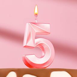 Свеча в торт цифра "5" золото