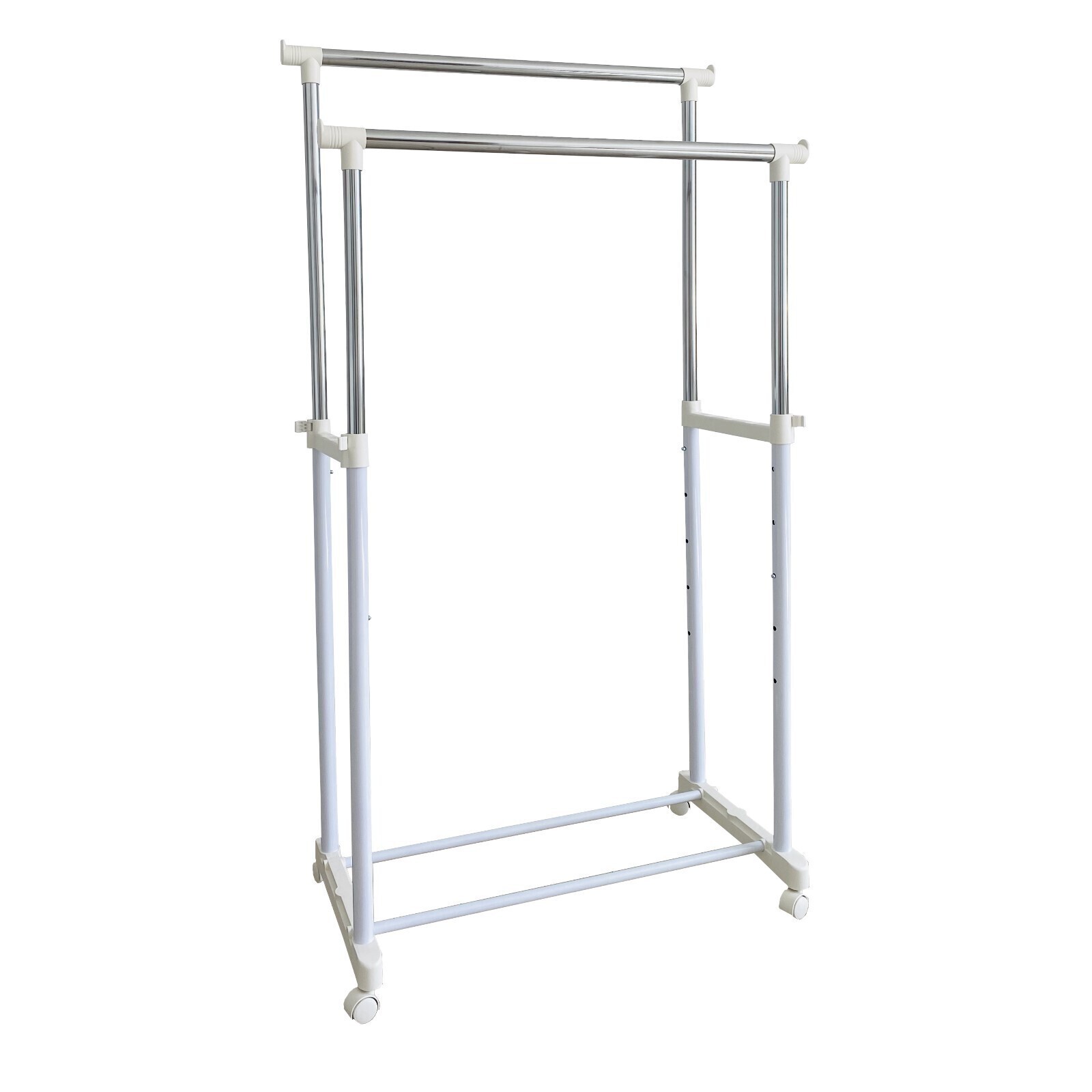 Стойка двойная для одежды BELFAST, 855 × 425 × 1235(1635) мм, двойная, на колёсиках