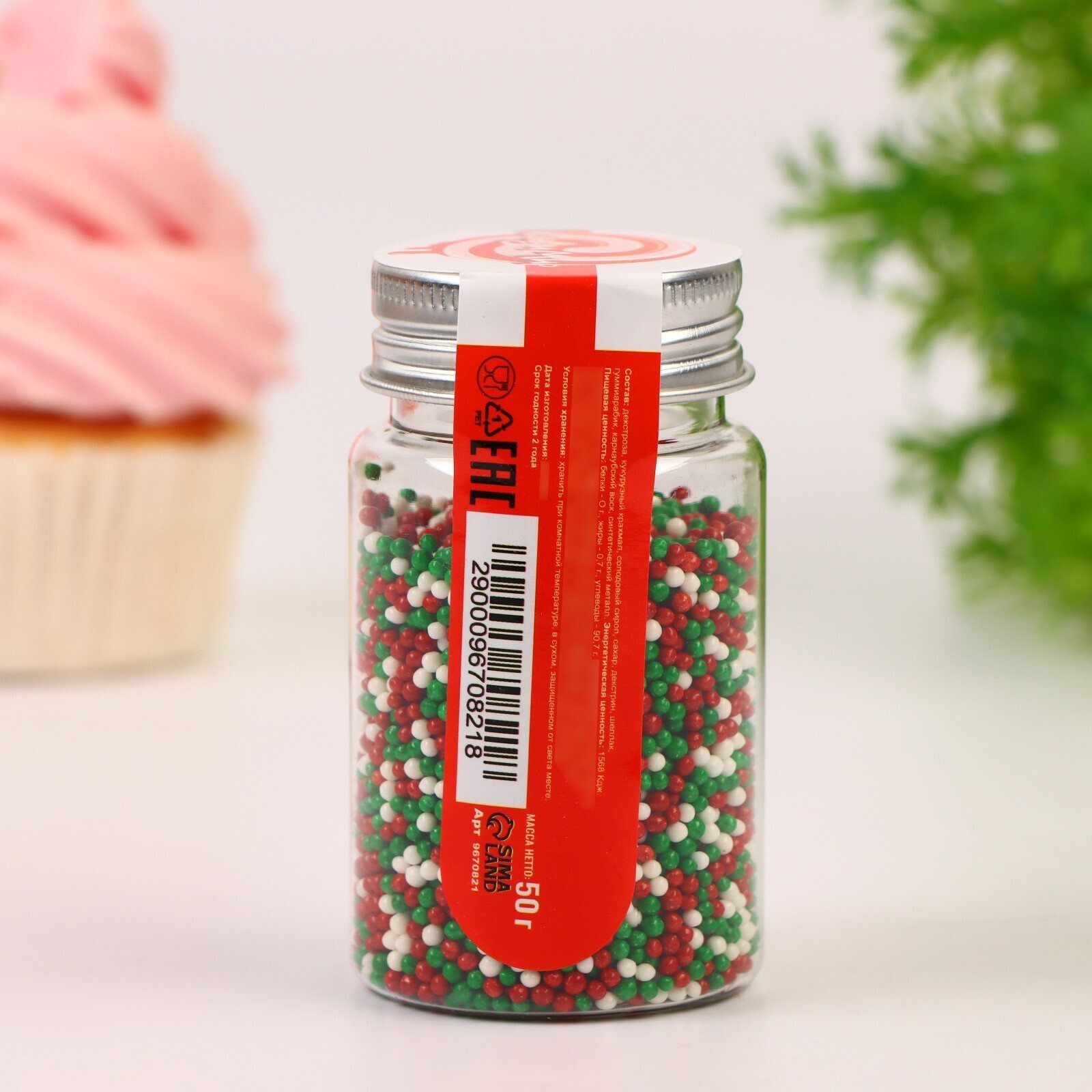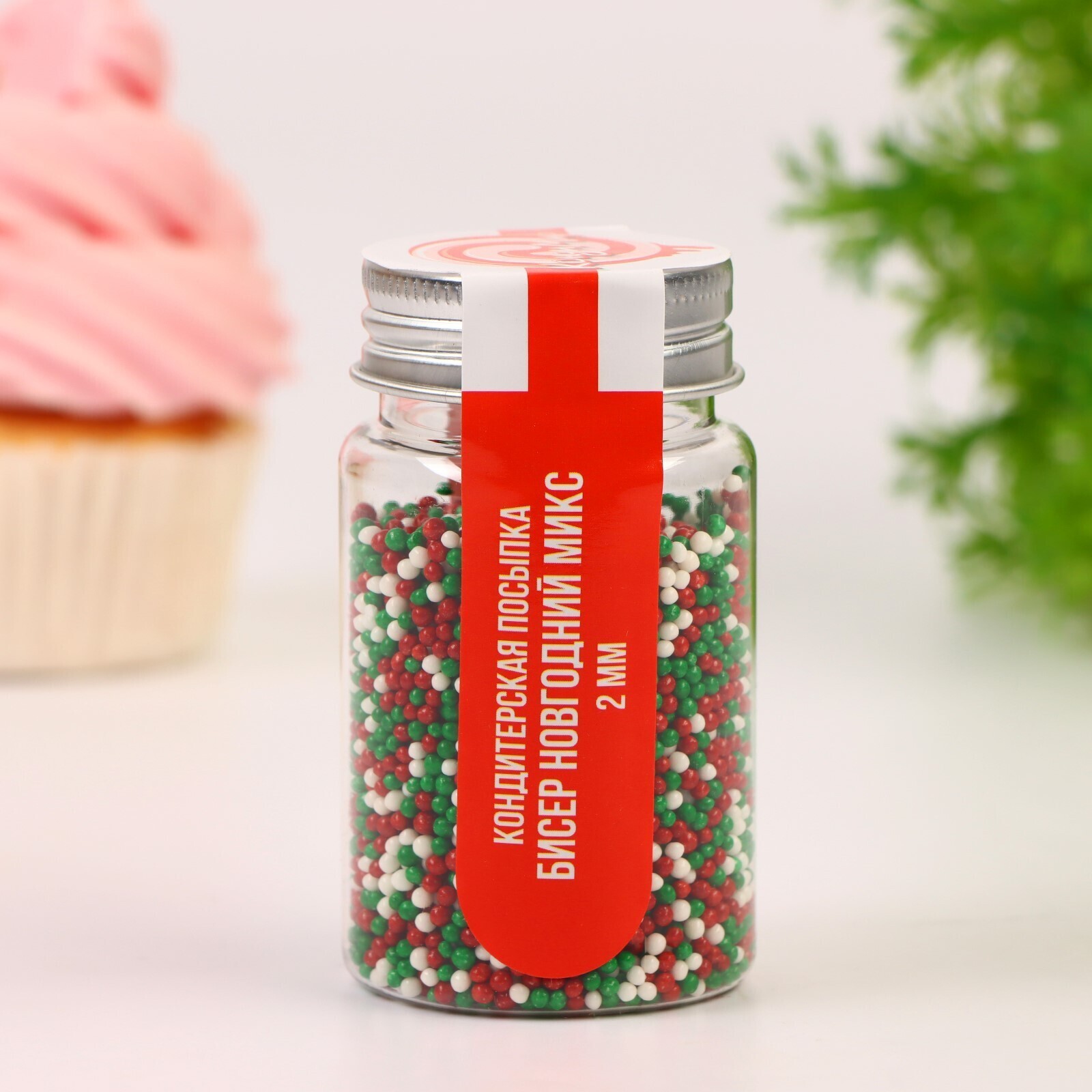 Кондитерская посыпка "Бисер новгодний микс", 2 мм, 50 г