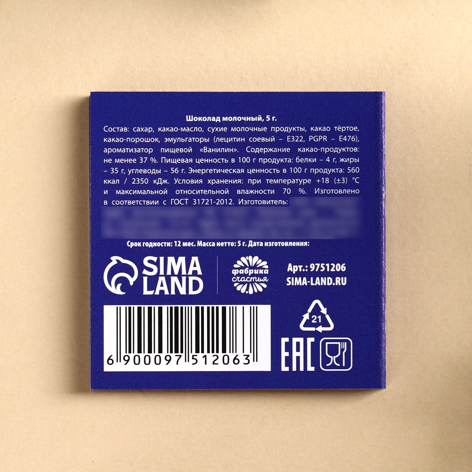 Масса нетто: 5 г.