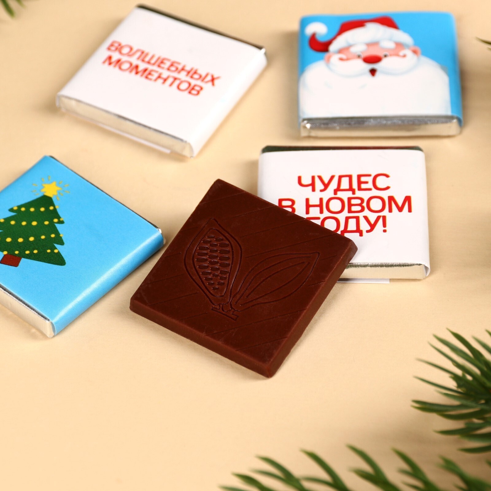 Молочный шоколад «Хорошего Нового Года» в пакете, 20 г (4 шт. х 5 г).