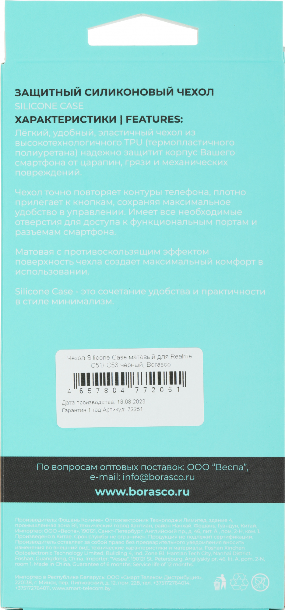 Чехол (клип-кейс) BoraSCO для Realme C51/C53/Note 50 Silicone Case черный (72251)