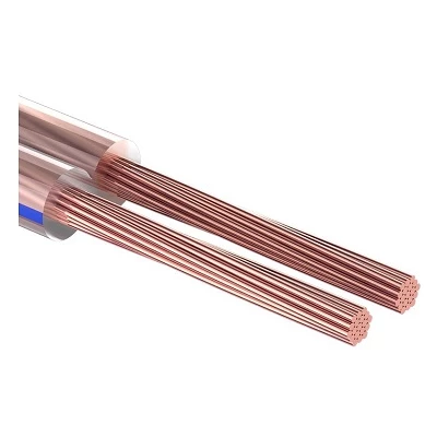 Акустический кабель состоит из двух параллельных многожильных проводников в изоляции из прозрачного поливинилхлоридного пластиката. Разделительное основание позволяет обеспечить разделение проводников кабеля без повреждения изоляции и оголения жил.