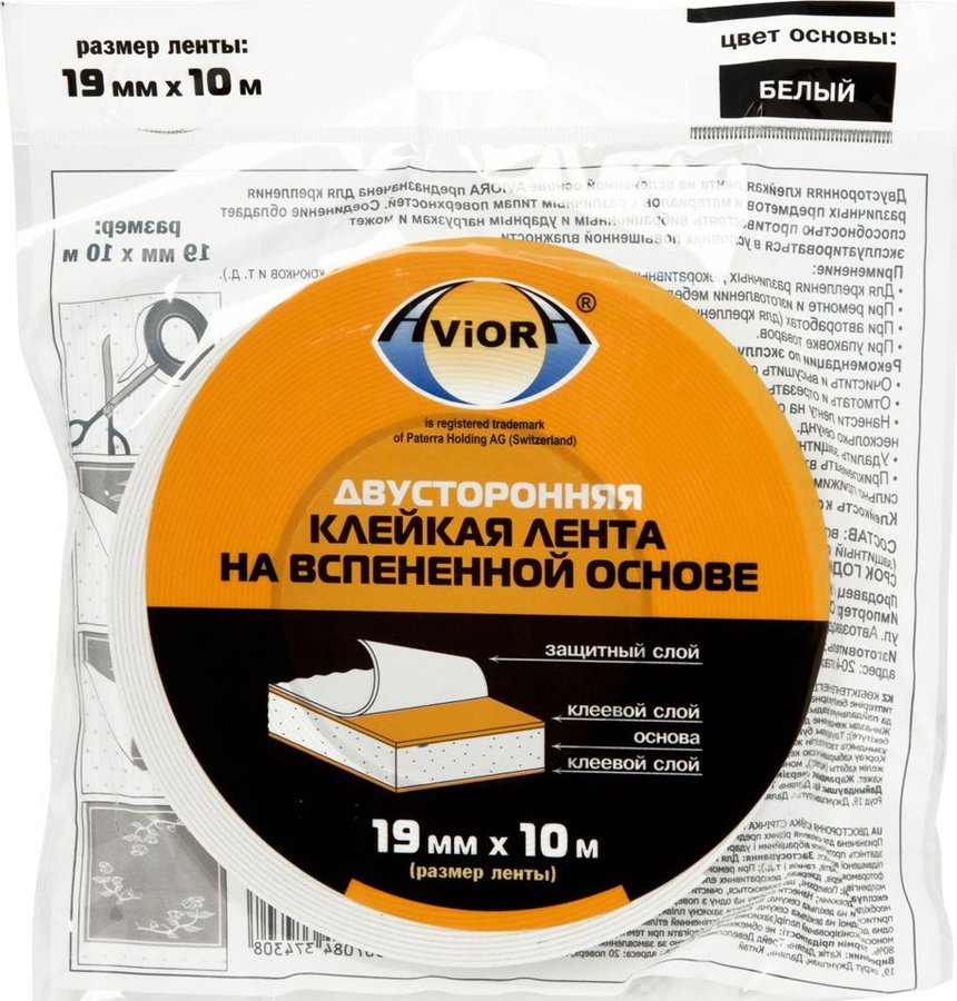 Лента двусторонняя на вспененной основе белая 19мм*10м AVIORA