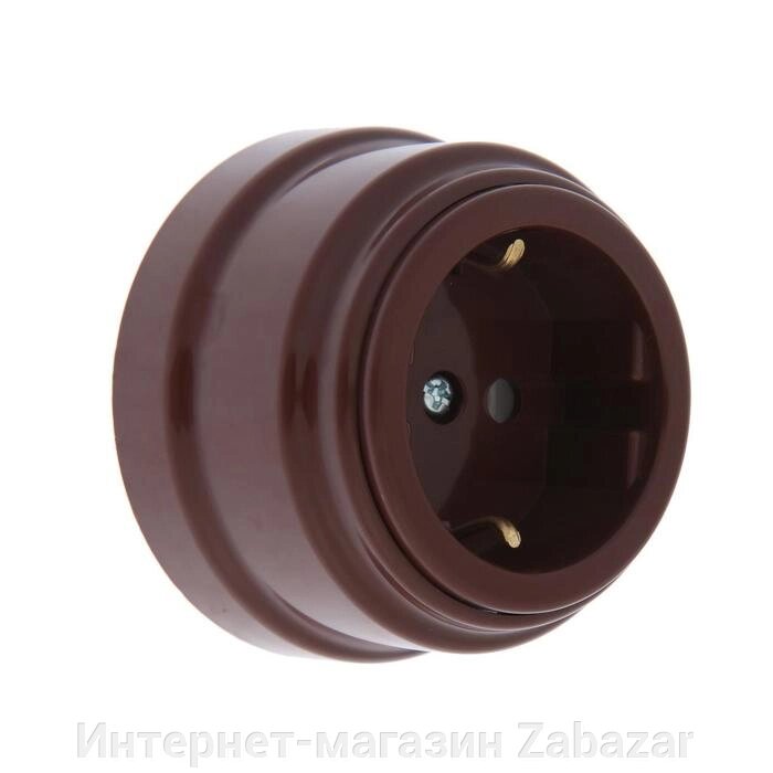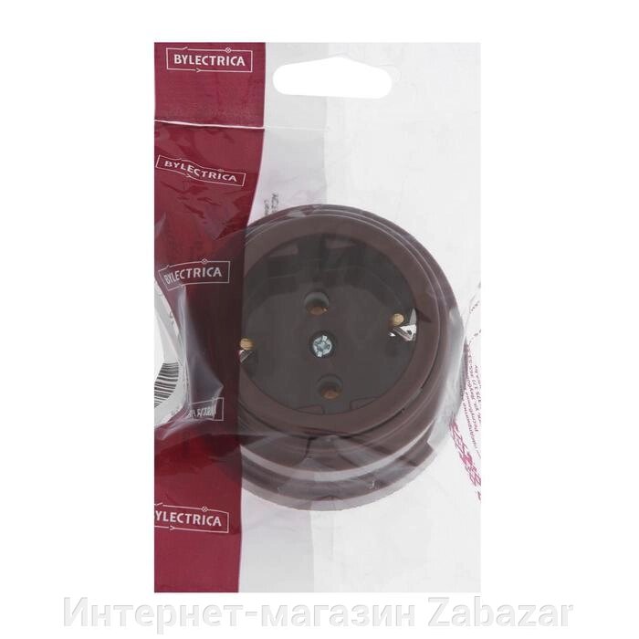 Розетка BYLECTRICA Ретро РА16-0202, 16А, одномест., наруж., с з/к, без крышки, IP20, корич.