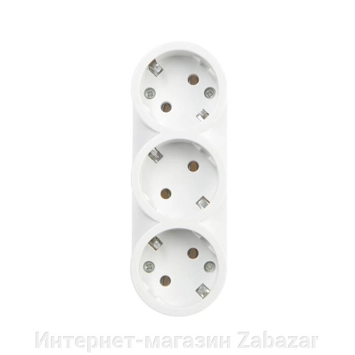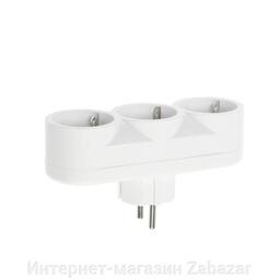 Разветвитель 3 розетки, 16А, с з/к, 220 В, белый, розничная упаковка.