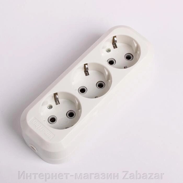 Колодка Smartbuy, 3 розетки, 16 А, 3500 Вт, с з/к, белая