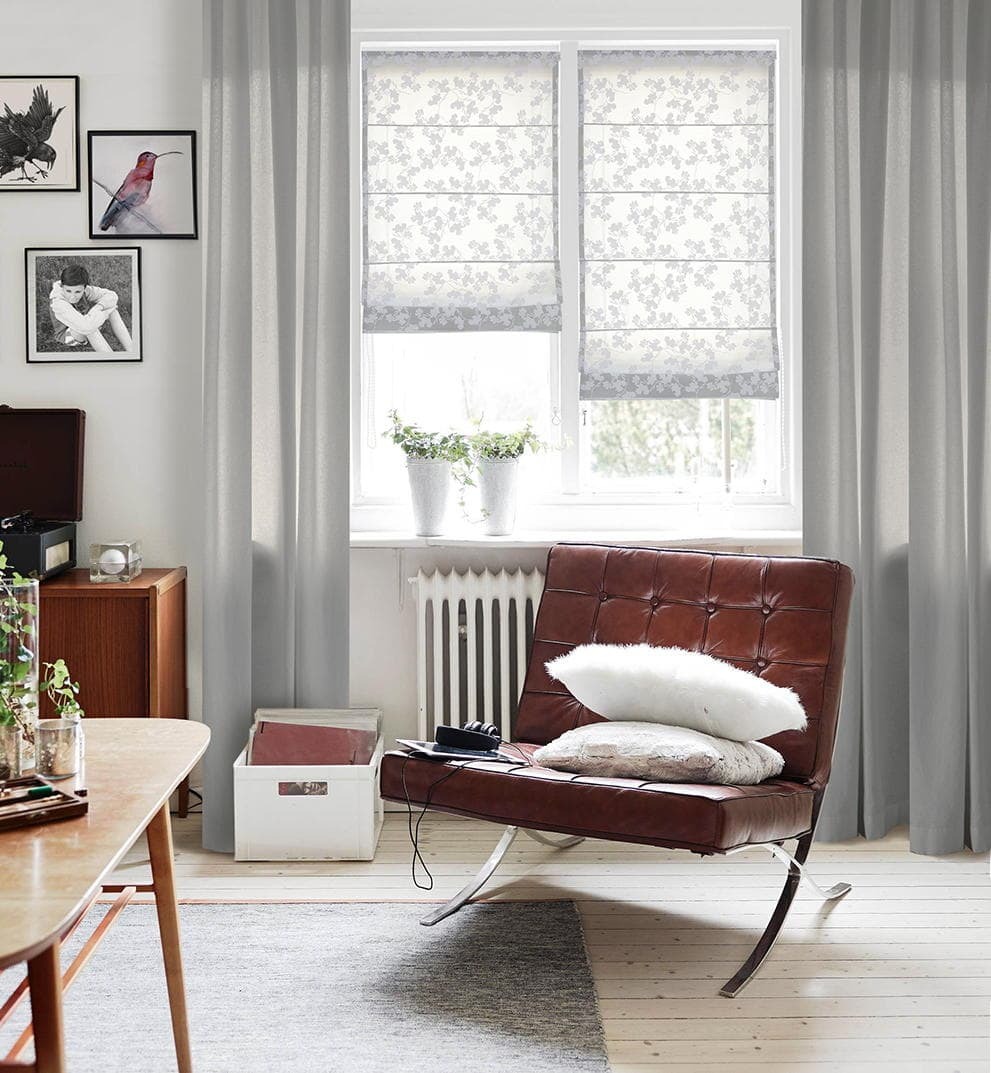 Римская штора Delfa Лира рисунок цветы, белый, ширина 52 см