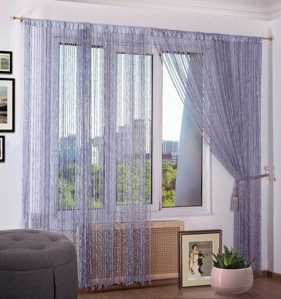 Занавеска нитяная ШТОРЫ 290х300см светло-серый