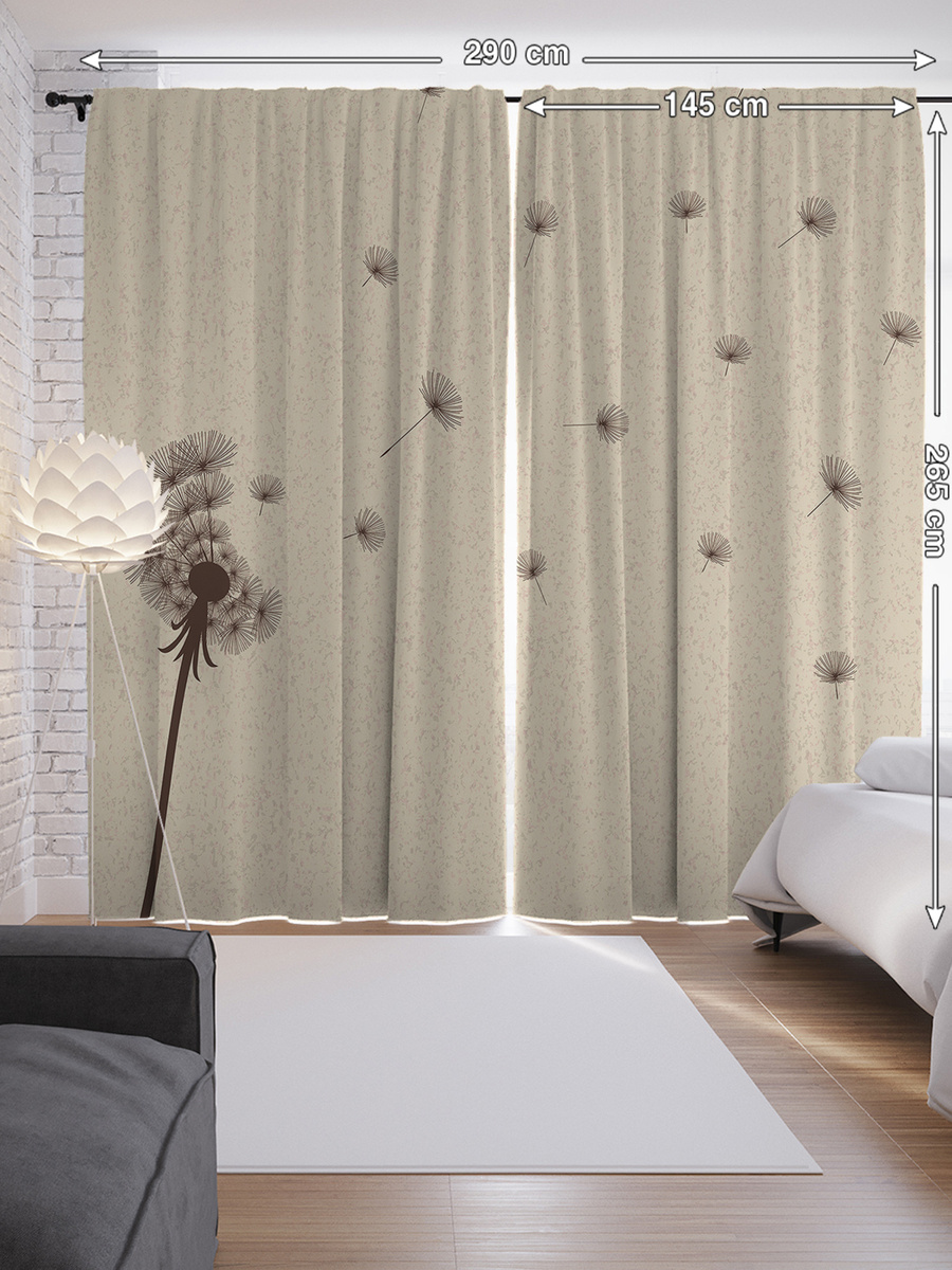 Шторы с фотопечатью "Одуванчик в полете" из сатена, 290х265 см