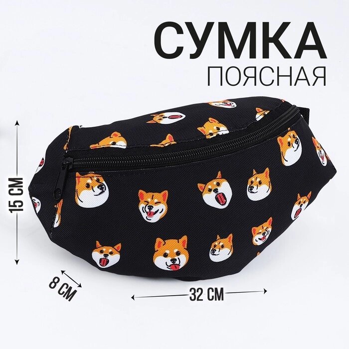 Сумка поясная Сиба-ину, 32*8*15, отд на молнии, цвет черный