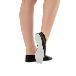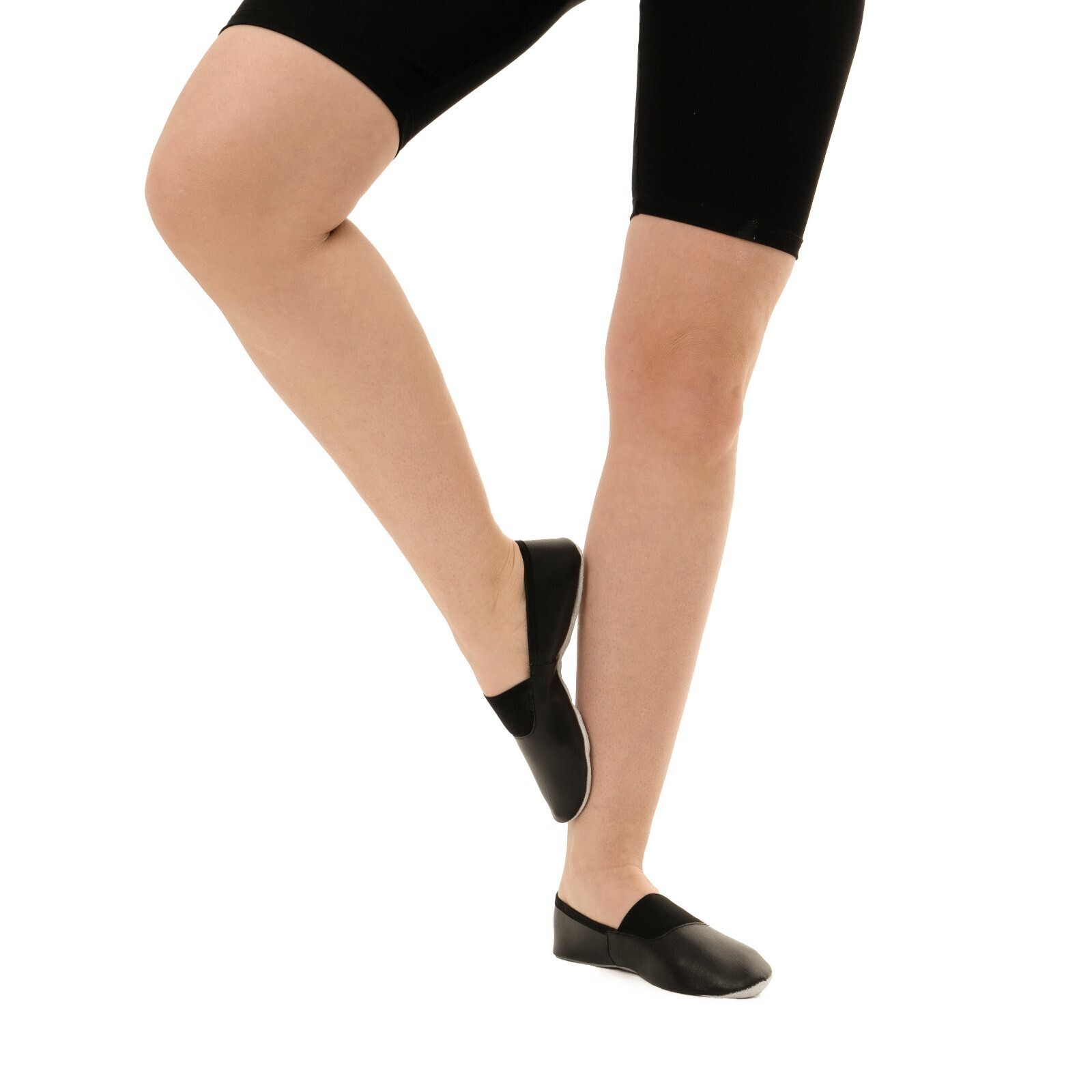 Чешки подходят для занятий танцами, гимнастикой и спортом. Подошва из натуральной кожи не скользит на гладком паркете и обеспечивает хорошее сцепление с площадкой. Широкая мягкая резинка крепко удерживает стопу, с ней чешки плотно сидят на ноге. Нейтральный цвет подойдёт любому костюму.