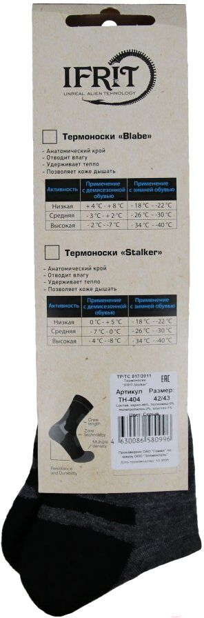 Термоноски Элементаль Lfrlt-Stalker / 436935 (р-р 44-45, серый)