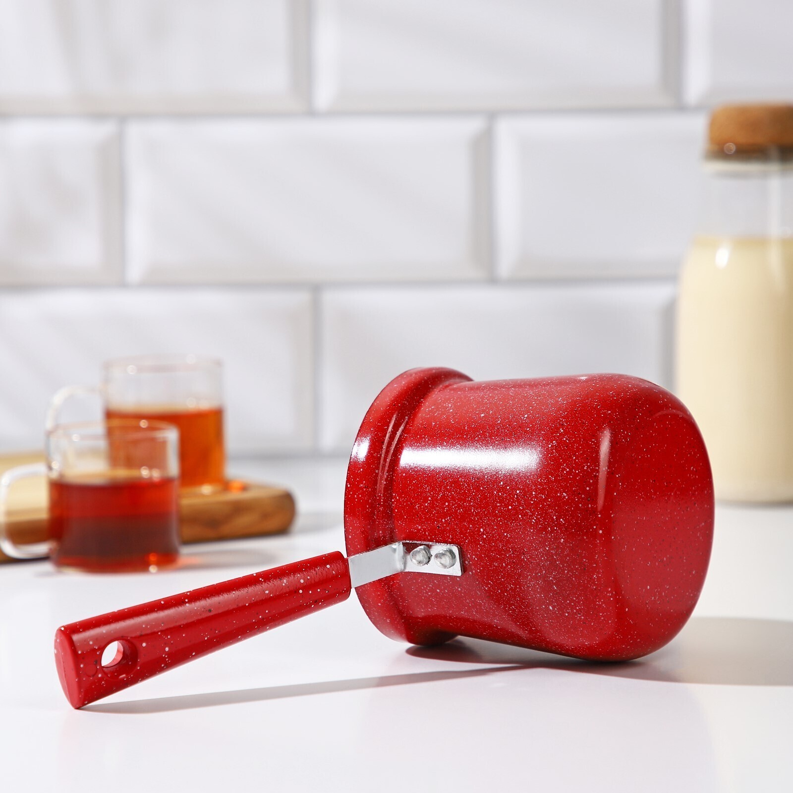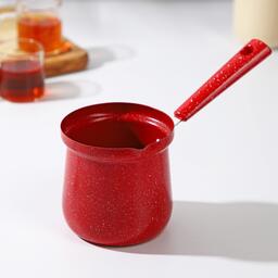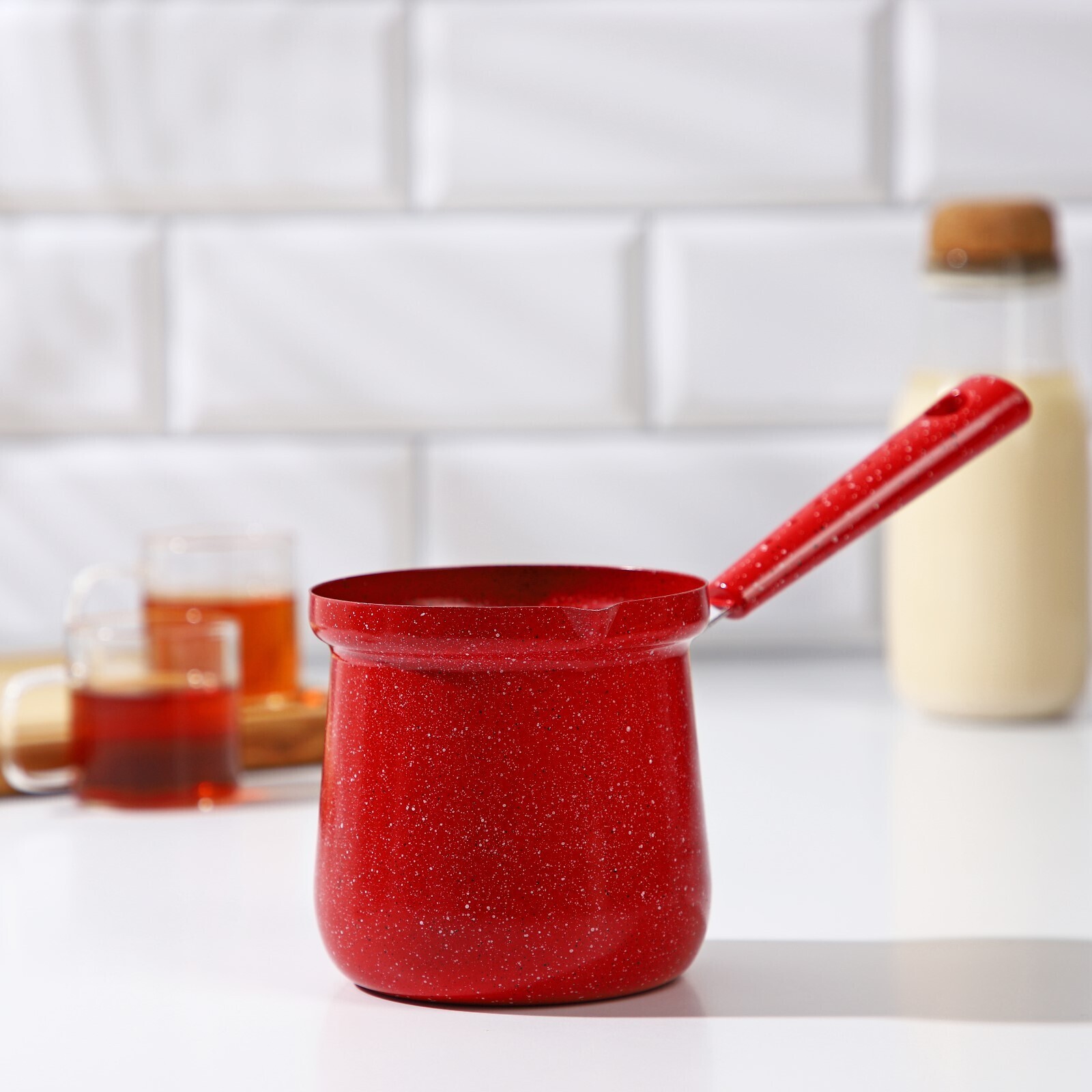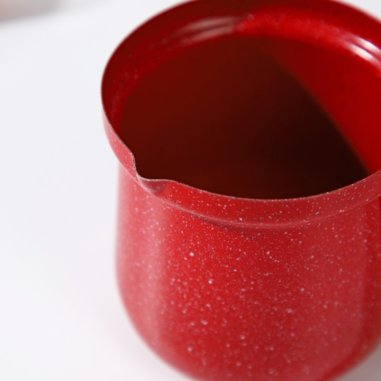 Турка Доляна «Мрамор рэд», 500 мл, d=9 см, пластиковая ручка, антипригарное покрытие, индукция, цвет красный