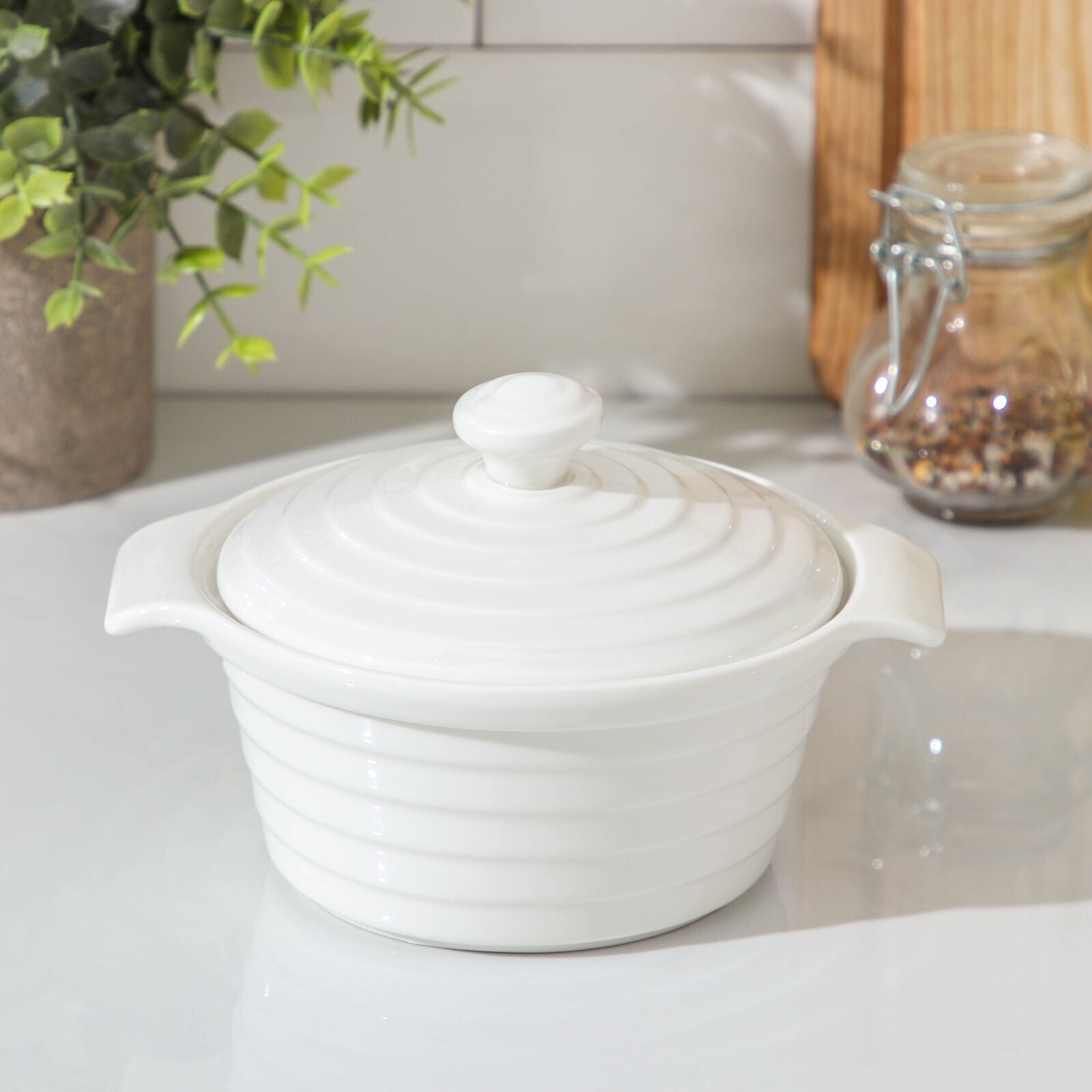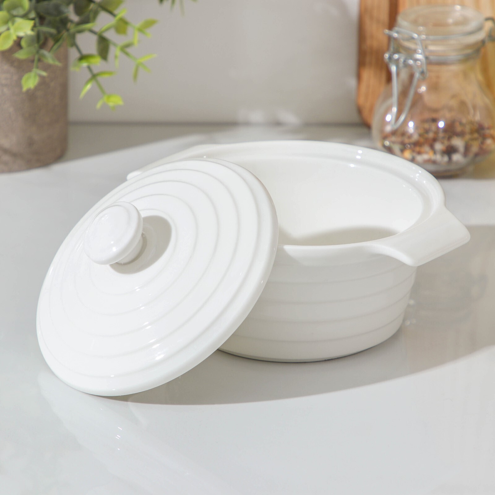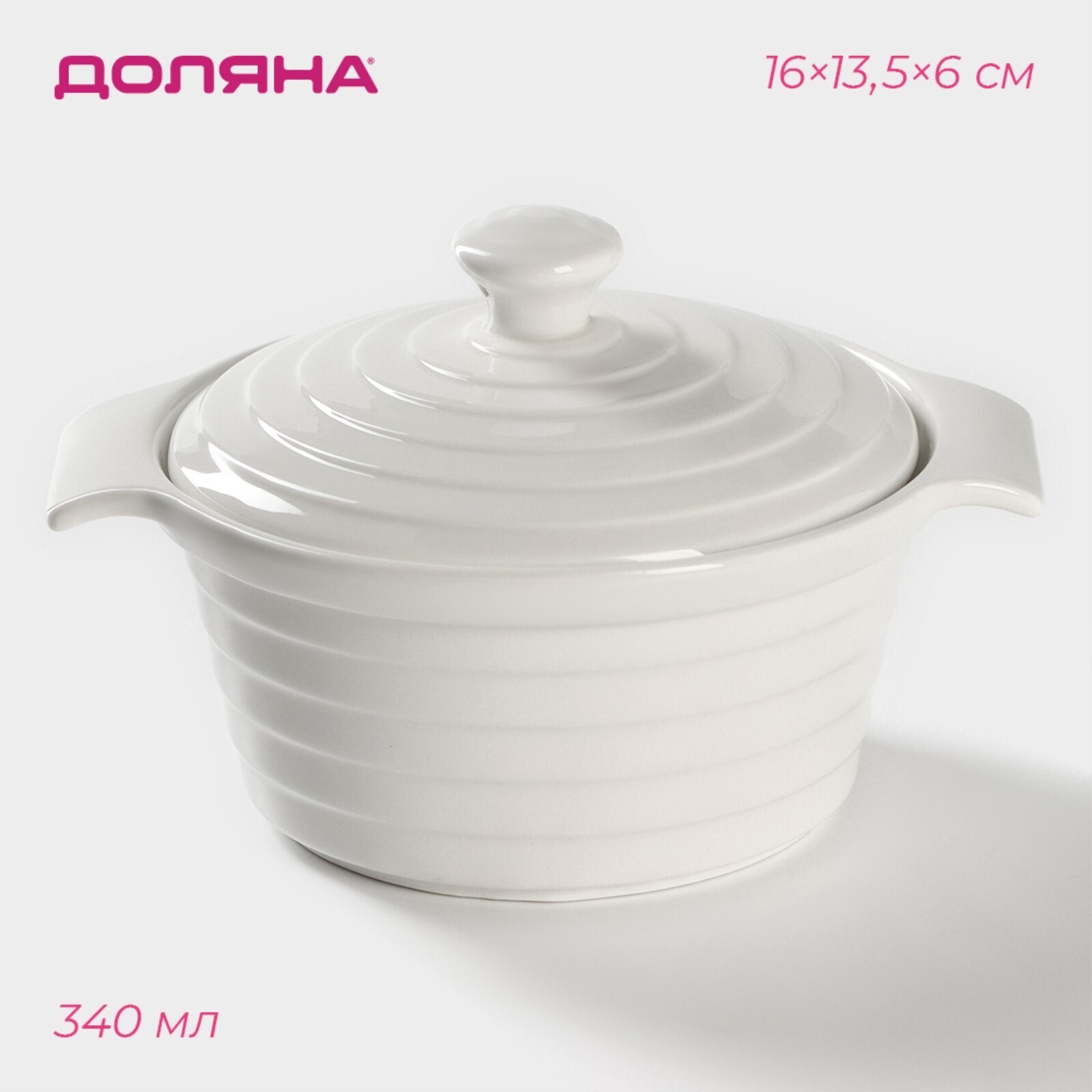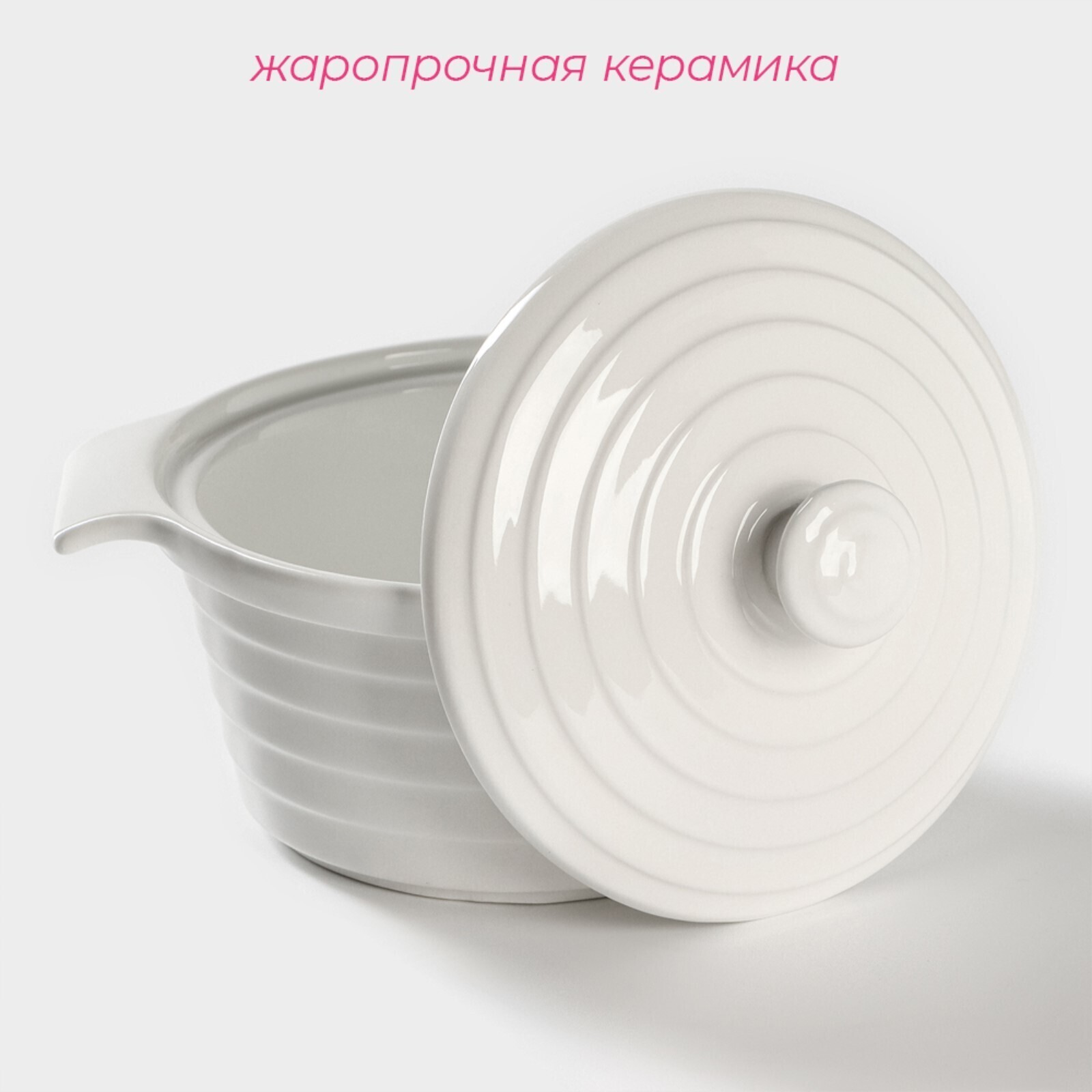 Кастрюля из жаропрочной керамики Доляна «Бруно», 340 мл, 16×13,5×6 см, цвет белый