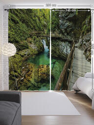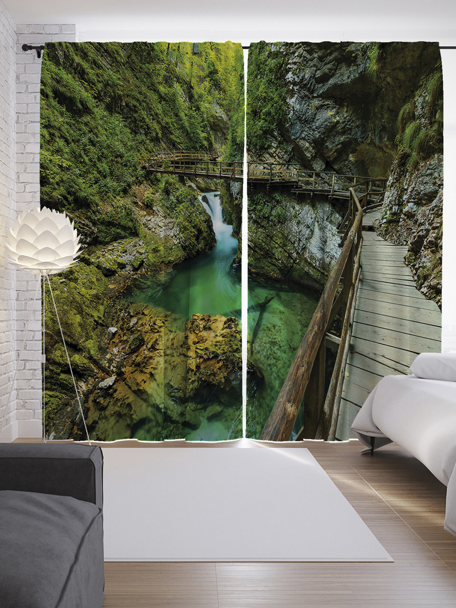 Шторы с фотопечатью "Мост на далеком острове" из сатена, 145x265 см
