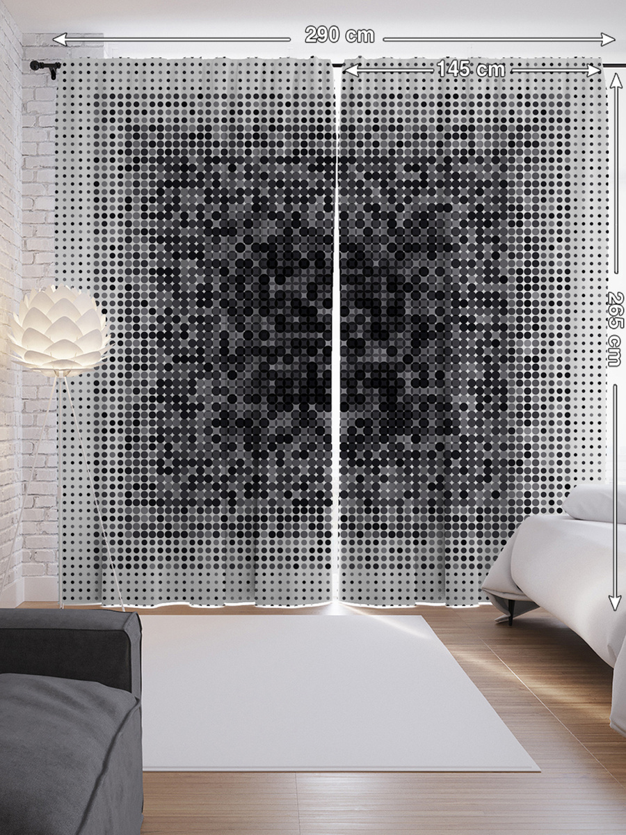 Шторы с фотопечатью "Точечный мираж" из сатена, 145x265 см