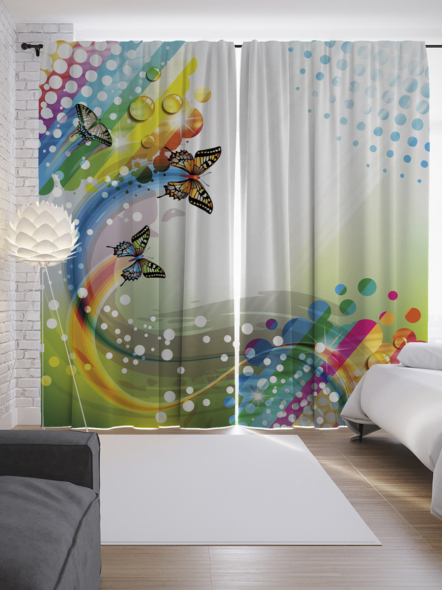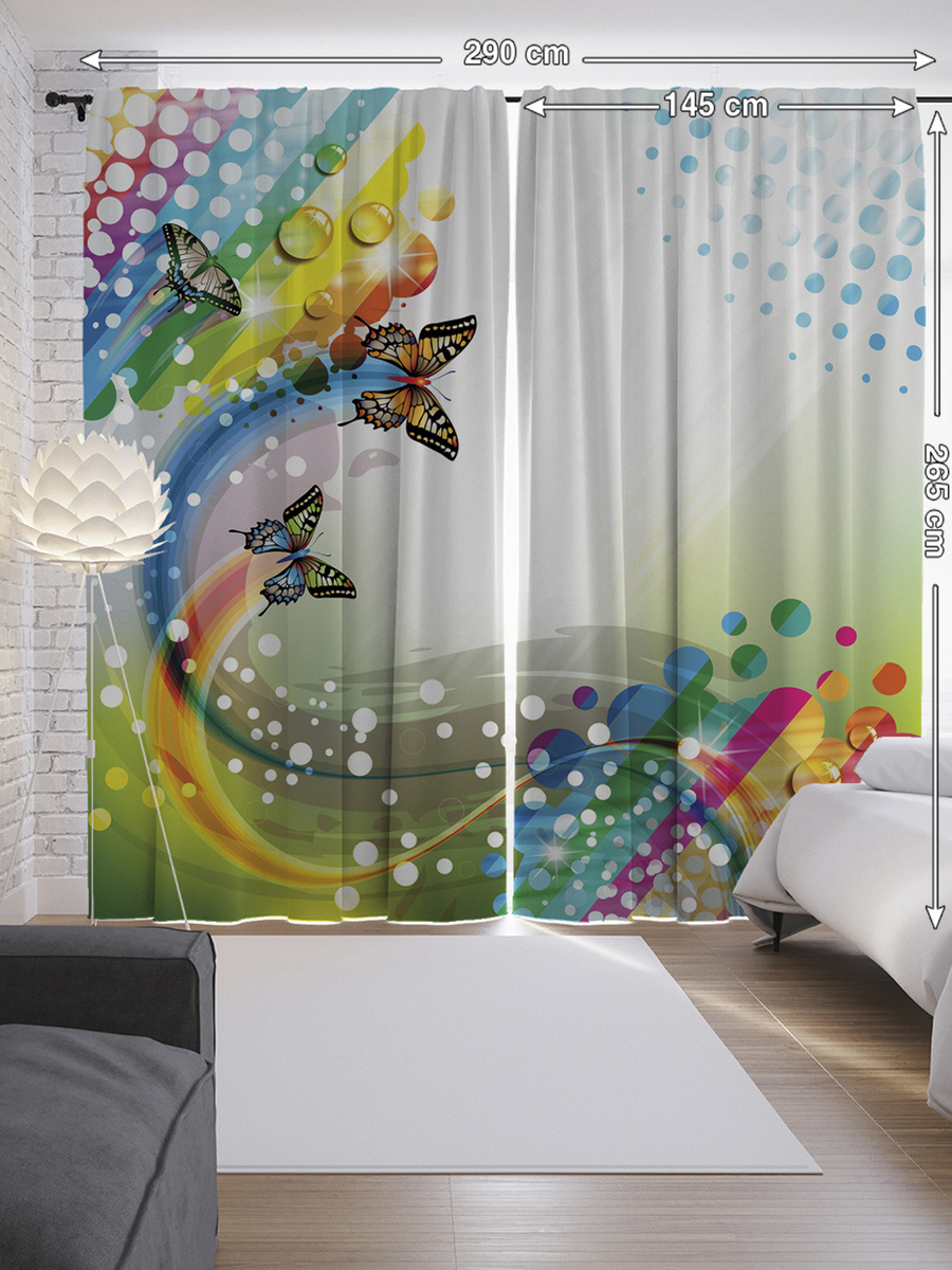 Шторы с фотопечатью "Радужный шлейф и бабочки" из сатена, 145x265 см