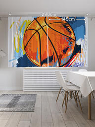 Шторы под лён "Баскетбольные краски", серия Oxford DeLux, 145x180 см