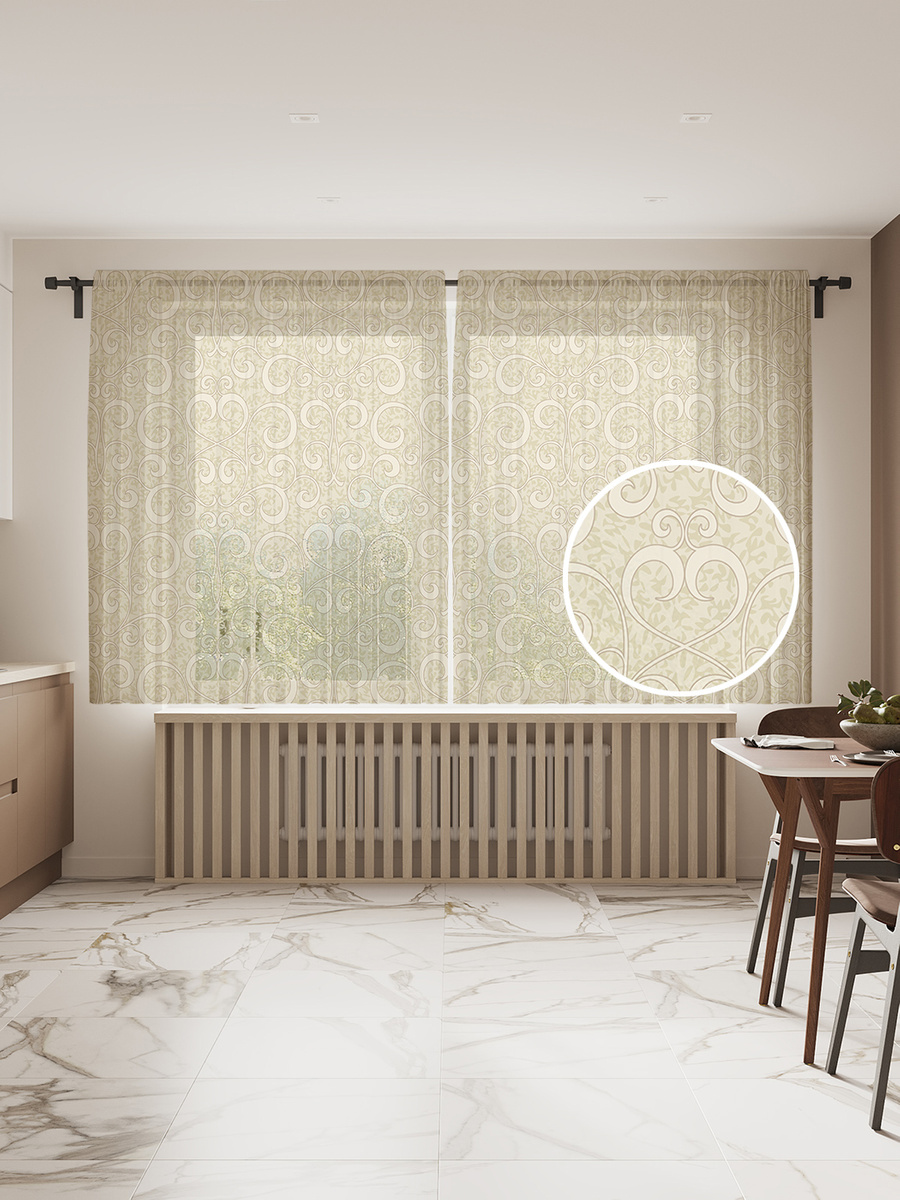 Тюль JoyArty высота 180 см, ширина 290 см, tul_13521_145x180, крепление - Лентабежевый