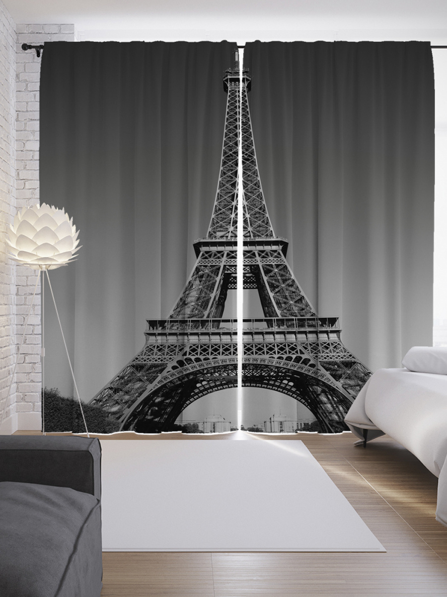 Шторы с фотопечатью "Серая эйфелева башня" из сатена, 145x265 см