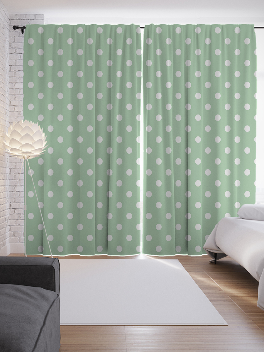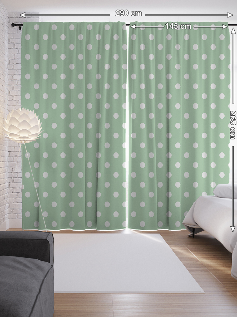Шторы с фотопечатью "Зеленый горошек" из сатена, 290х265 см