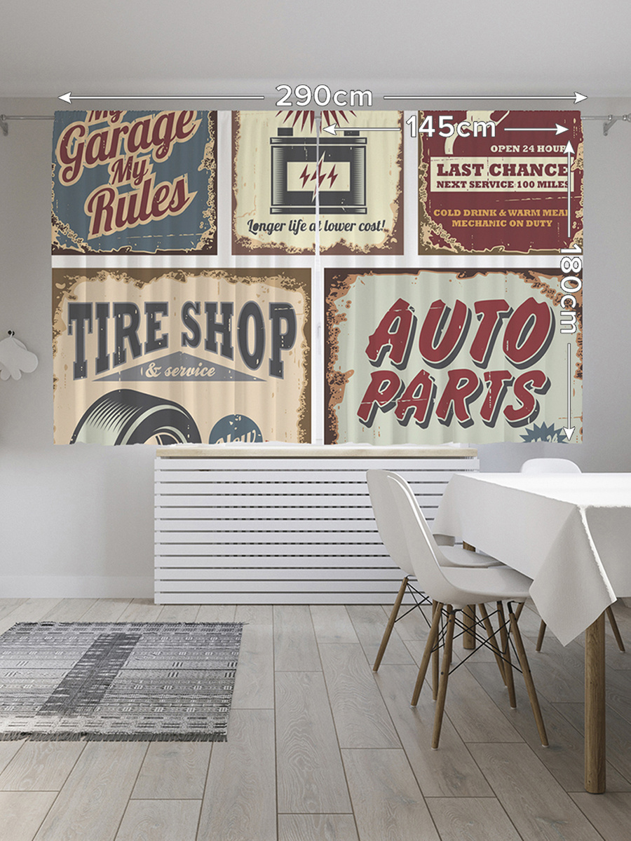 Шторы с фотопечатью "Автомобильное ретро" из сатена, 145х180 см