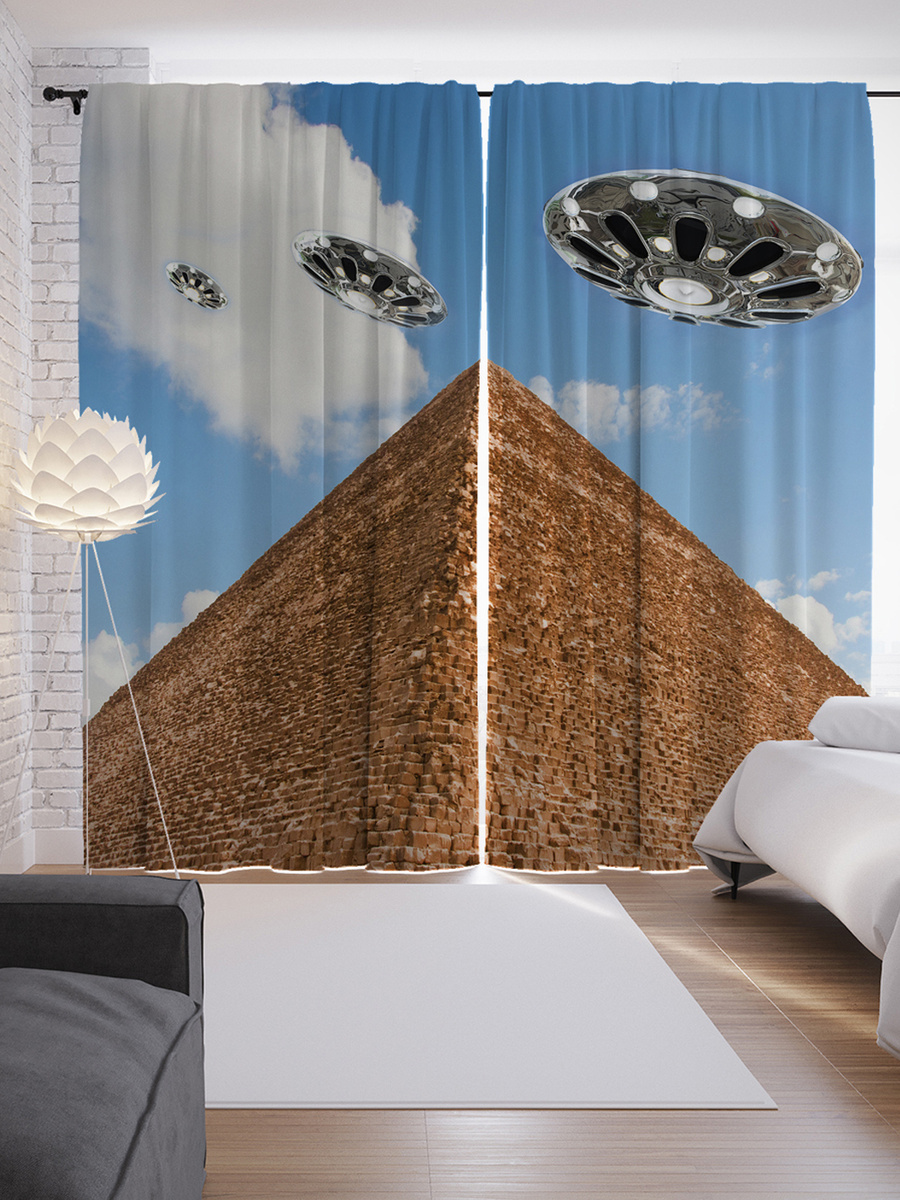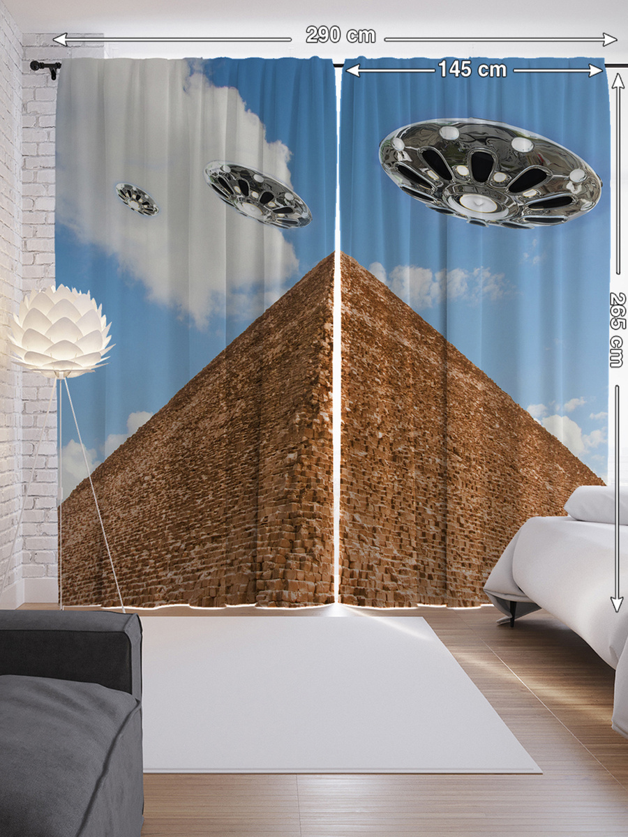 Шторы с фотопечатью "НЛО над пирамидой" из сатена, 290х265 см