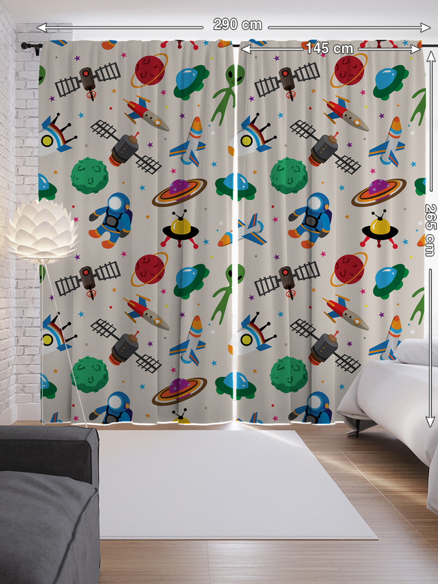Шторы с фотопечатью "Космическая радость" из сатена, 290х265 см
