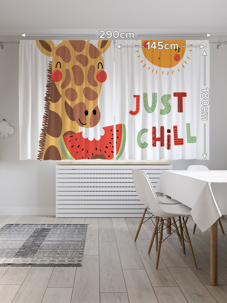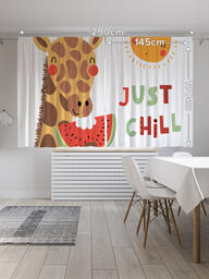 Шторы с фотопечатью "Улыбчивый жираф" из сатена, 145х180 см