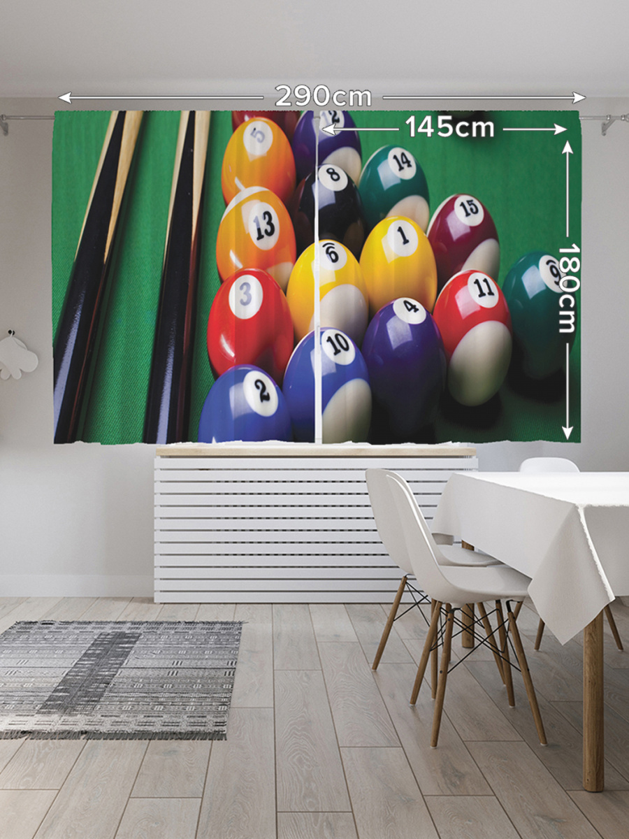 Шторы с фотопечатью "Бильярдный набор" из сатена, 145х180 см