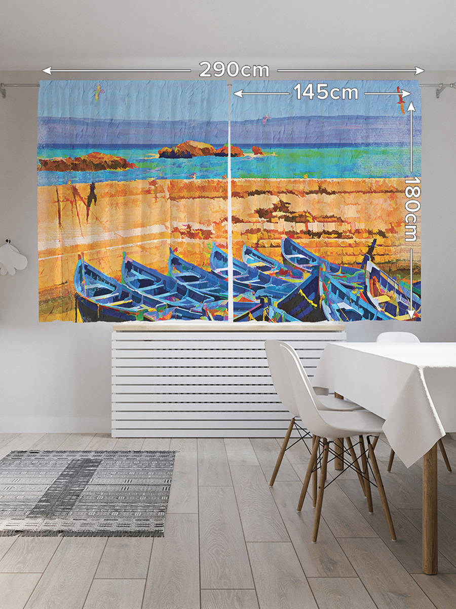 Шторы с фотопечатью "Лодочная стоянка" из сатена, 145х180 см